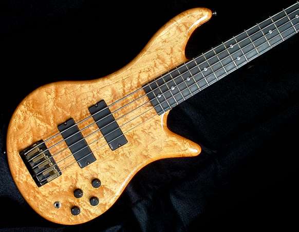 5-STRING. Ten-piece Mahogany body with bookmatched birds-eye maple top. EMG active electronics. Original design.